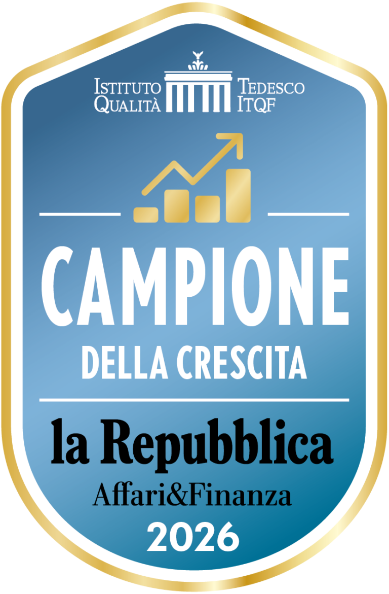 Siamo orgogliosi di essere stati riconosciuti tra i Campioni della Crescita 2026, la classifica realizzata da ITQF e La Repubblica Affari & Finanza che premia le aziende italiane con il più alto tasso di crescita negli ultimi tre anni. Un risultato che conferma la forza del nostro progetto, la passione del nostro team e la fiducia dei nostri clienti e partner. Continuiamo a crescere insieme, con visione, concretezza e la stessa energia che ci guida ogni giorno.